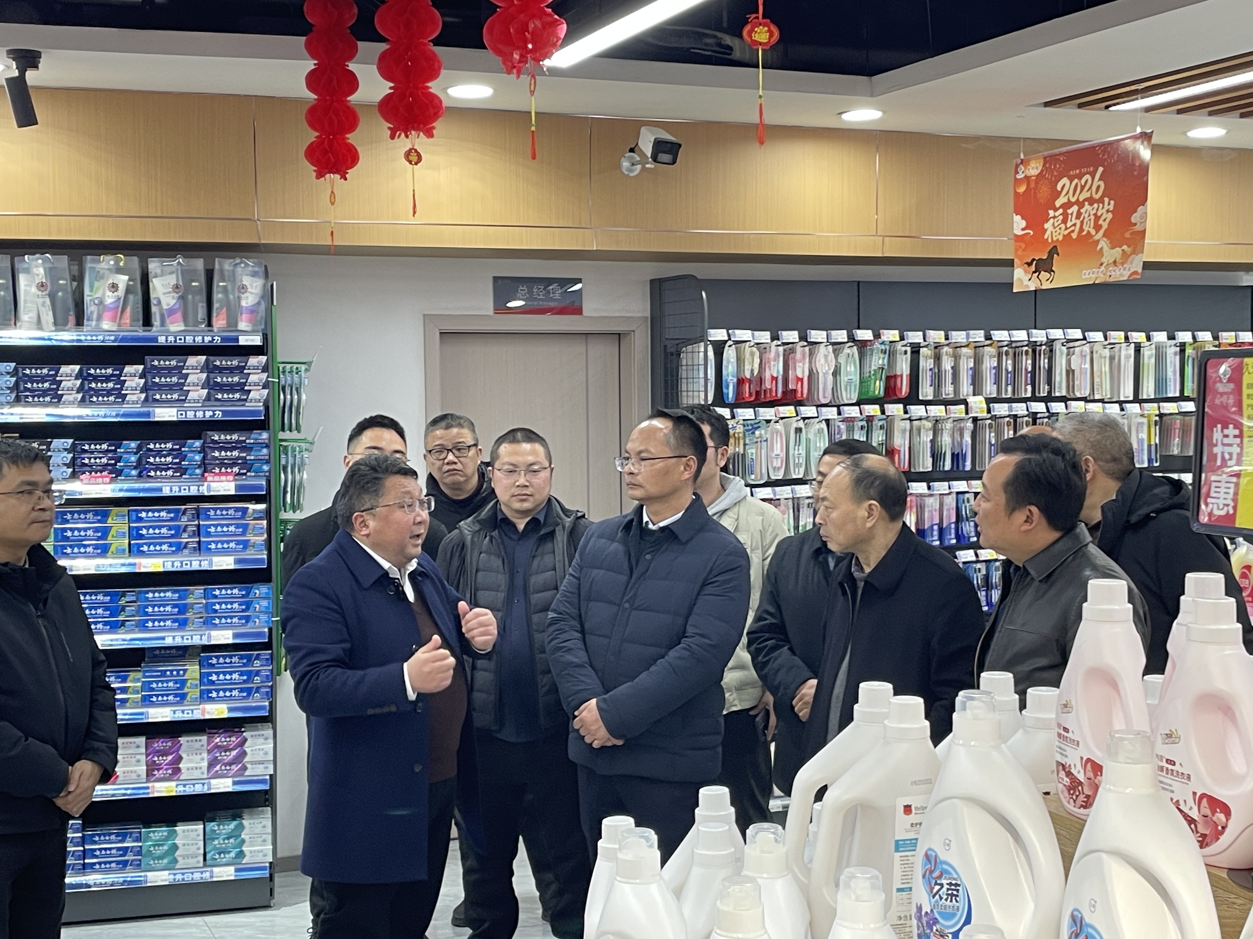 在老鄰居·平昌供銷生活超市,考察組聽取了社有企業(yè)負(fù)責(zé)人對供銷超市經(jīng)營模式、商品結(jié)構(gòu)、銷售情況的介紹,并就社有企業(yè)融入城鄉(xiāng)便民服務(wù)、拓展消費市場的運營模式進(jìn)行了探討。